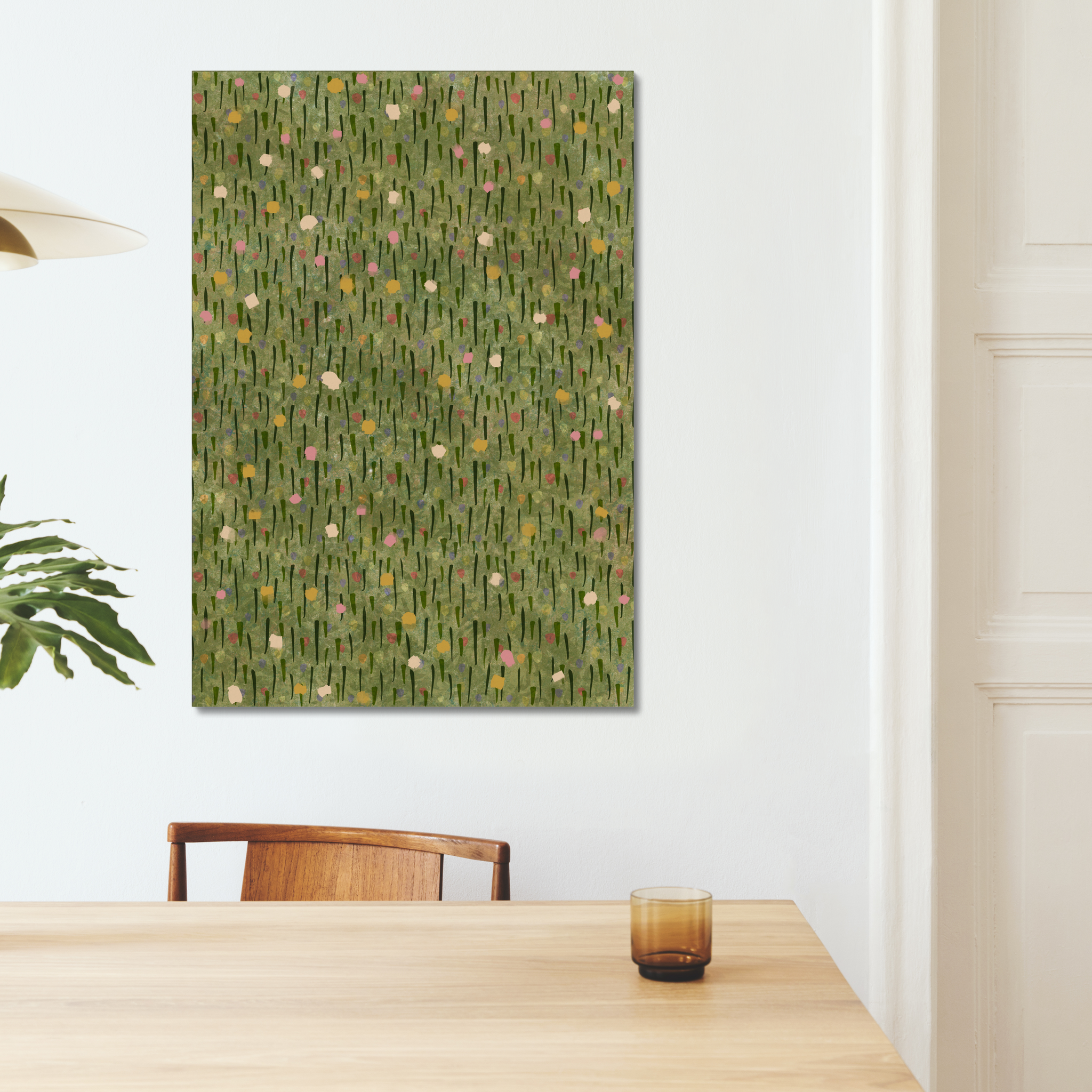Each piece is the result of digital exploration into diverse conceptual themes, blending organic forms with geometric structure to evoke motion, emotion, and atmosphere. From blooming meadows to scattered light and dynamic dispersion, the collection invites reflection and creativity—making it ideal for offices that value inspiration and visual calm.