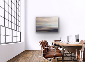 About: Melanie Max’s semi-abstract original landscape paintings are inspired by the British coast and wetlands. “I think of my paintings as found landscapes and as visual journeys. They evolve on the canvas and the focus of the painting gradually comes into view. I make visual journeys in paint to find the landscapes where I feel most at home. I find the landscape I need after a journey into my minds eye, making sense of the marks and colours on the canvas along the way. Each new mark suggesting a new path to travel, sometimes bringing me to a crossroads where I sit and study the subtle shifts of light and colour on the horizon to decide which direction to take. It is a meditative escape and part of my creative process. I begin with a journey and my journey ends when I have found the landscape where I want to be."
